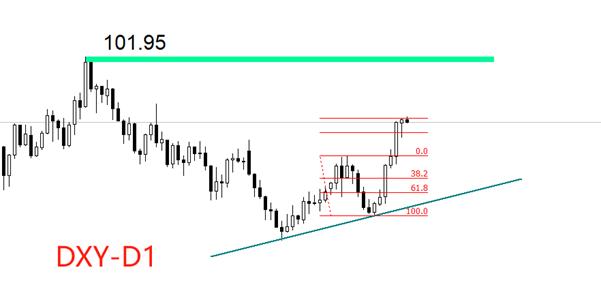 From the trend structure, at the daily level, the US dollar index is in a short trend for a long time, but a successful bottoming structure has appeared, and the future trend is likely to idle long. The latest band is rising, and the upward trend is relatively sharp, with a high of 100.12 points, standing at the 100 integer mark. The market price is running at the 1.382~1.618 quarter of the previous round of decline, and may suffer technical resistance and there is pressure to pull back in the short term. The medium-term resistance is at the May 12 high of 101.95 points, and the market will encounter strong resistance at this time.