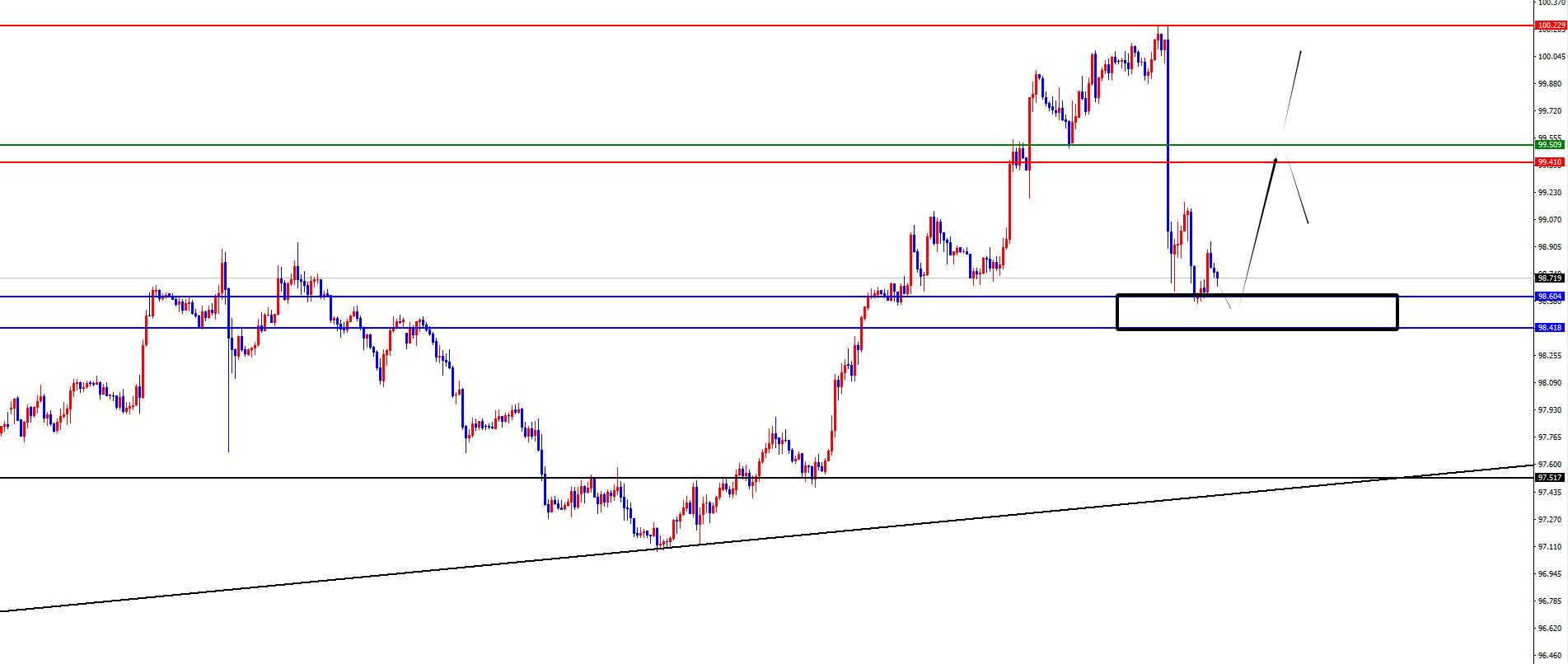 The US dollar index has a large range of 98.40-60, and the defense is 97.90, Target 99.10-99.50