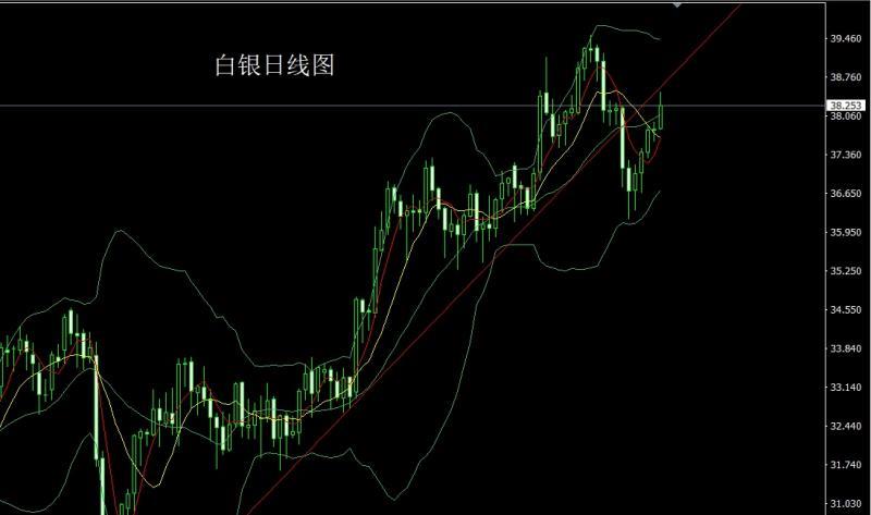 The silver market opened at 37.829 yesterday and the market fell slightly and gave the 37.805 position. After the market rose strongly, the daily line reached the highest point of 38.5 and then the market fluctuated and consolidated. After the daily line finally closed at 38.251, the daily line closed with a medium-positive line with a long upper shadow line. After this pattern ended, the 38.05 stop loss was 37.85 today, the target was 38.5, and the break was 38.75 and 39-39.2