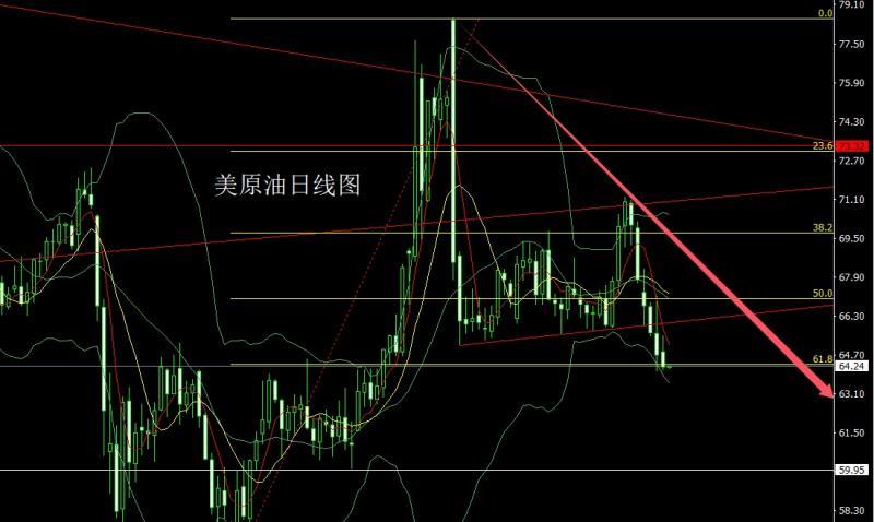 The US crude oil market opened at 64.81 yesterday and then the market first rose to 65.5. Then the market fluctuated strongly. The daily line was at the lowest point of 64.07 and then the market consolidated. The daily line finally closed at 64.19 and then the market closed with a very long upper shadow line. After this pattern ended, today's short stop loss of 65.6, the target below 64.5 and 64.05, and below 63.6 and 63.1.