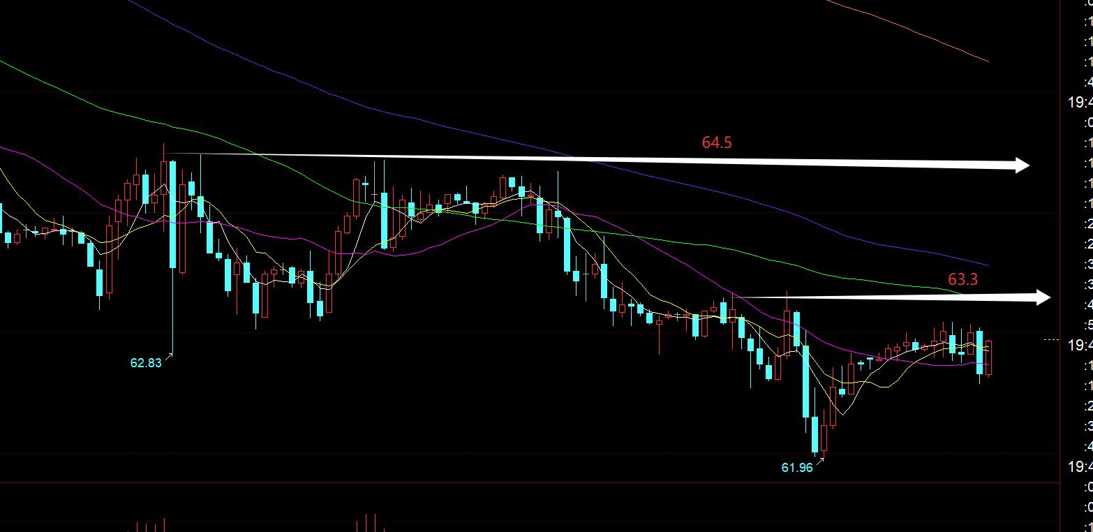 Third, crude oil: Yesterday was really bumpy than gold, and I tried to stabilize the upward trend of 63 several times to stabilize the upward trend of 63, but the US market was suppressed in the end. Yesterday's layout failed; as a result, 62 stabilized in the middle of the night, and it will return to 63 again; it is considered a thorn Break back to the original entry point;