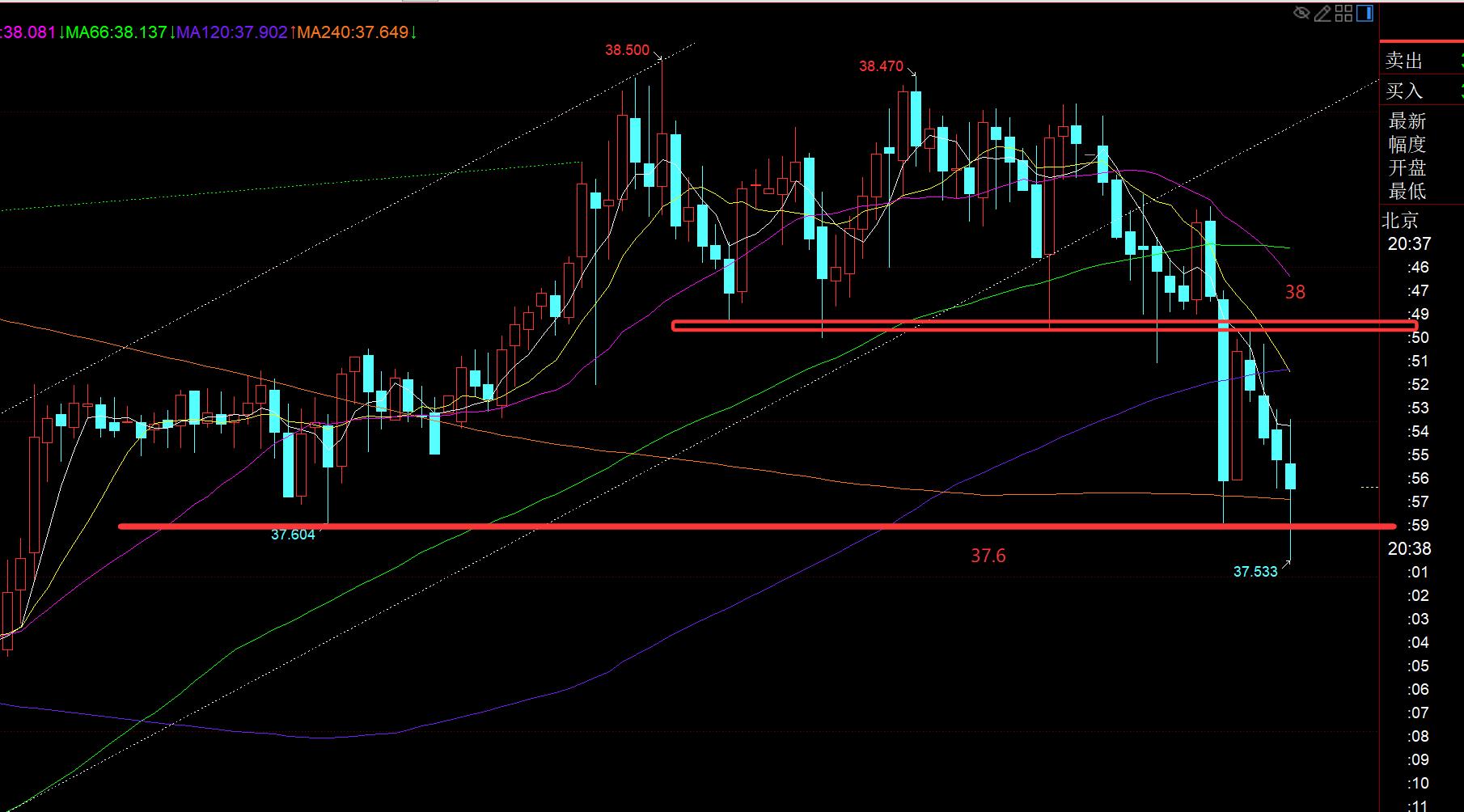 plateado: esta noche, concéntrese en las dos posiciones de 38 y 37.6. Su declive también es una corrección para el retroceso después del aumento la semana pasada, por lo que espere la estabilización; sigue por encima de 37.6 alrededor de 22 puntos, y luego será estable y rebote; o después de que se rompa a 38 nuevamente, seguirá la posición alcanzada, no Chase Down, y no estará estable para una habitación estable; it;