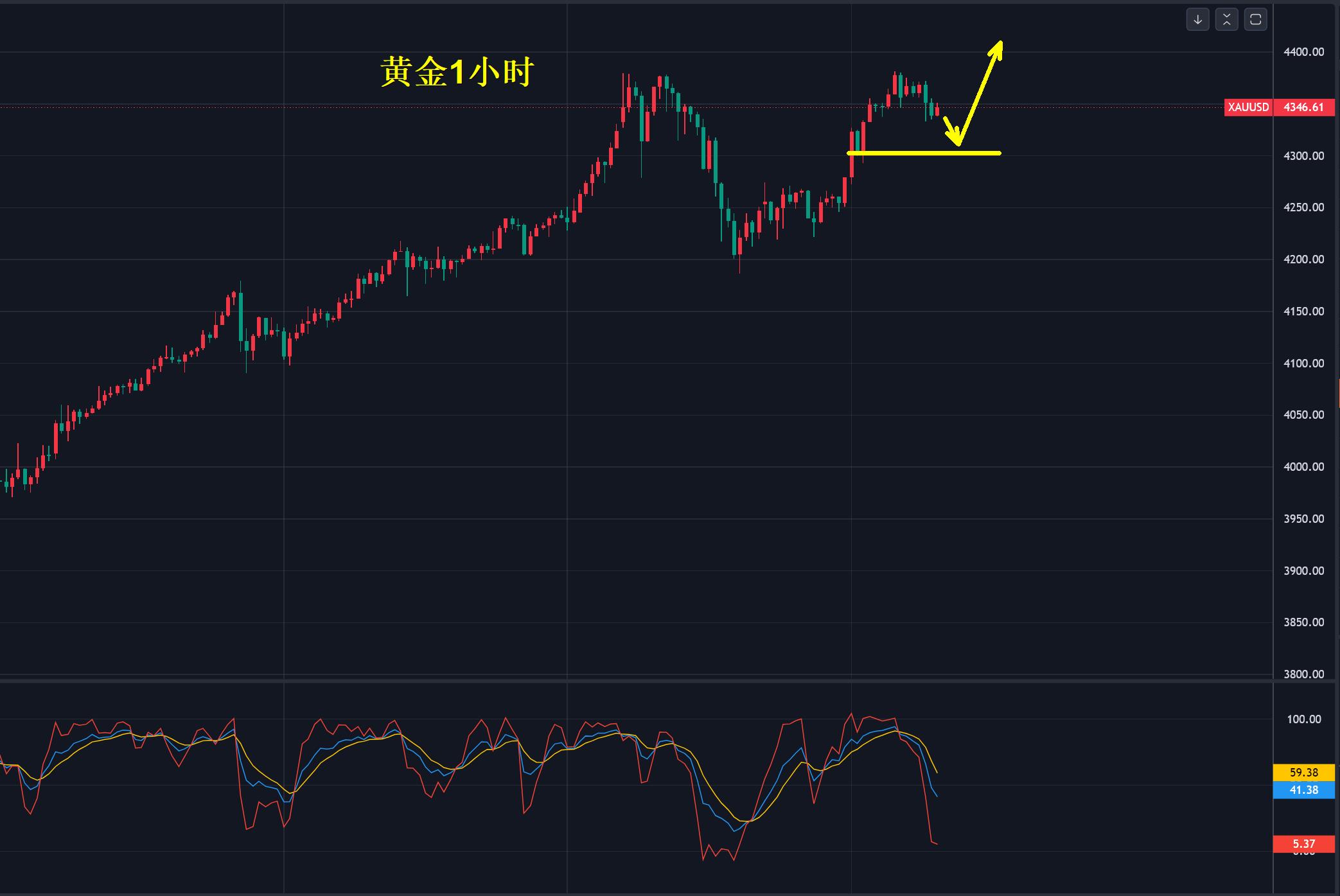 ¿Se superará hoy el máximo anterior? ¿Se está formando un doble techo aquí o continúa alcanzando máximos? Creo que la clave después del retroceso es el punto de soporte de 4.300 dólares la onza temprano en la mañana. La tendencia alcista depende de la ruptura del máximo anterior de 4.385 dólares. Esta ola ha aumentado en 1.200 dólares estadounidenses, que también es el mayor aumento esta vez.