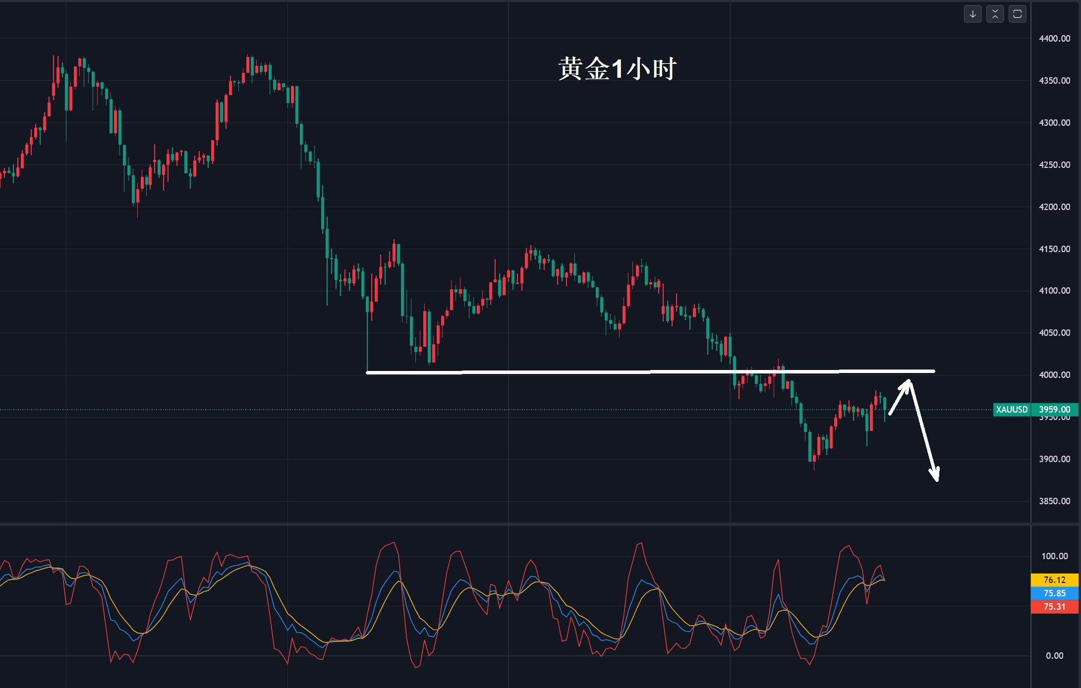 El martes, el precio del oro cayó 100 dólares y el mercado estadounidense retrocedió 100 dólares. La amplitud alcanzó más de 200 dólares estadounidenses a lo largo del día. Se recuperó después de probar cerca de 3.880 dólares. El punto clave de este repunte fueron los 4.003 dólares. Esta posición también fue la presión clave después de que se rompió el shock anterior del rango 4180-4003.