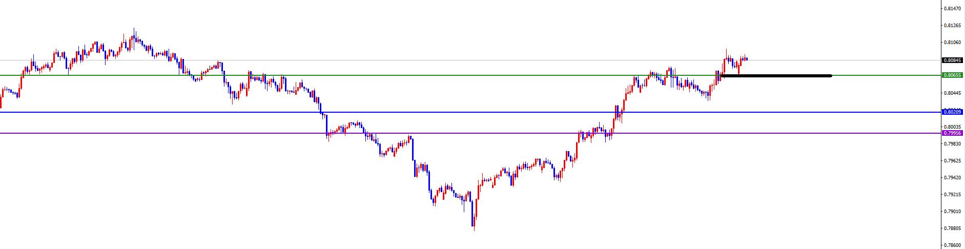 La línea divisoria de aguas clave 0.8060, se mantiene mucho antes de que el precio se revierta (cuidado con la reversión)