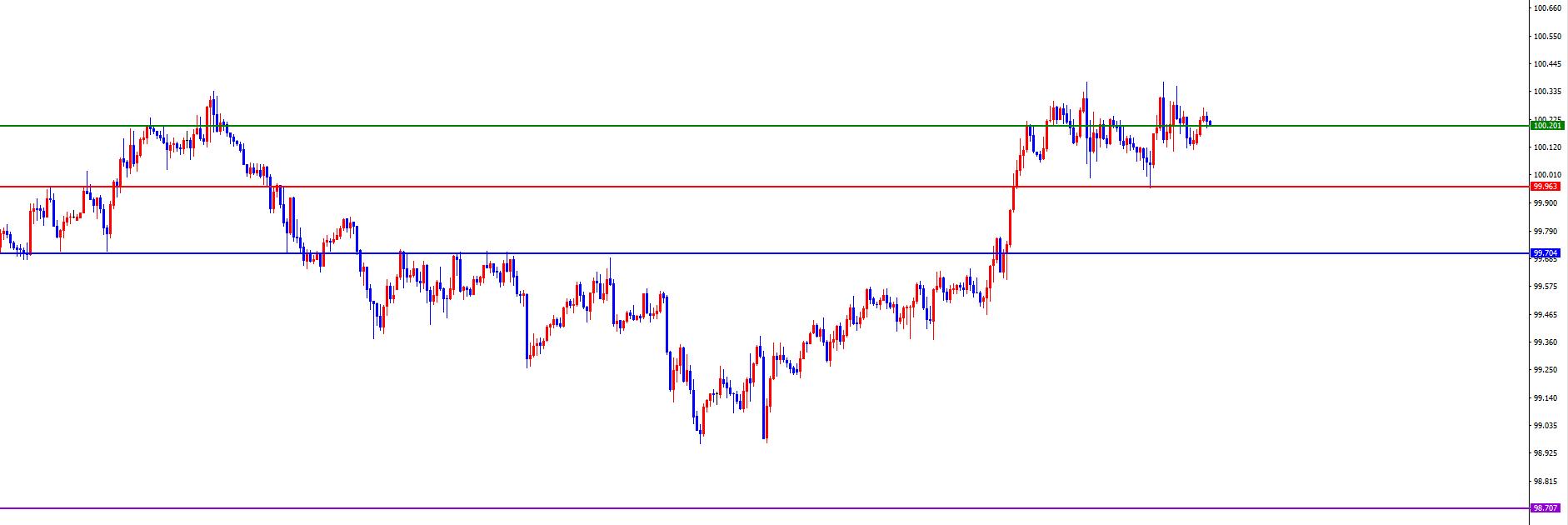 La cuenca clave es el área 99,95-100,20. El precio se mantiene largo hasta que no haya señal de reversión (la clave es centrarse en si puede ocurrir una reversión en el momento)