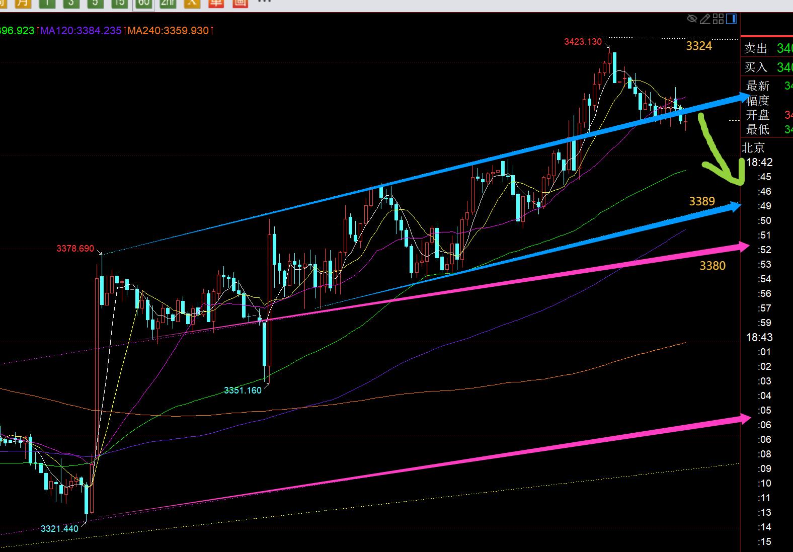 Tout d'abord, le niveau quotidien d'or: hier, s'appuyant sur la moyenne des 5 ans pour se stabiliser et fermer, mais il a été utile dans une bonne petite éloignement de l'unia Dans l'ensemble, c'est toujours qu'il n'a pas échappé à la consolidation du triangle de convergence au cours des quatre derniers mois; Le sommet d'une nuit est de 3423, perçant légèrement la piste supérieure du nouveau triangle de convergence de canal, et la ligne de clôture à la fin du marché est toujours sur cette ligne de canal, il ne peut donc pas être conclu que la percée est efficace et il est nécessaire de vérifier le modèle d'aujourd'hui pour confirmer; www.xmaccount.combiné avec la vidéo hebdomadaire, le modèle de cycle de tendance au cours des quatre derniers mois est détaillé, 3438-3267 appartient au troisième cycle de tendances, se référant aux deux cycles de 3120 et 3247 au cours de la période précédente, cette fois 3409-3311 est la première volatilité et déclin. La vague de 3311 stabilisant l'attaque vers le haut est le premier traction. Au moins, il permettra du point élevé des 3409 précédents, puis il pourrait lancer une deuxième fluctuation et une baisse. Ensuite, il a été réalisé hier soir, avec le plus haut tirage à 3423. Aujourd'hui, nous devons faire attention à attaquer la pression à court terme. D'un autre côté, hier a souligné qu'aujourd'hui est la fin de la ligne mensuelle, qui est facile de supprimer une vague à la fin du mois. La ligne mensuelle peut se fermer à nouveau sur la ligne d'ombre supérieure K, et se stabilisera et augmentera à nouveau au début du mois prochain. En bref, vous devez être prudemment optimiste aujourd'hui, ou ne pas vous précipiter vers le haussier, et observer la force de la tendance de la journée; Le support de la moyenne mobile d'aujourd'hui se déplace vers le haut de 3395-96, ce n'est que lorsque la fermeture tombe efficacement en dessous de ce que le marché peut se transformer en une baisse à court terme et reculer, puis le deuxième point de soutien de la ligne d'oscillation, puis se fier à la 3267-3311 Niveau d'or de 4 heures: 10 La moyenne mobile augmente 3304-05, et le support de la piste moyenne augmente 3392. Ces deux sont également les points de support à court terme d'aujourd'hui. Only when this cycle effectively breaks and loses them can it turn from a volatile pull up to a volatile decline;