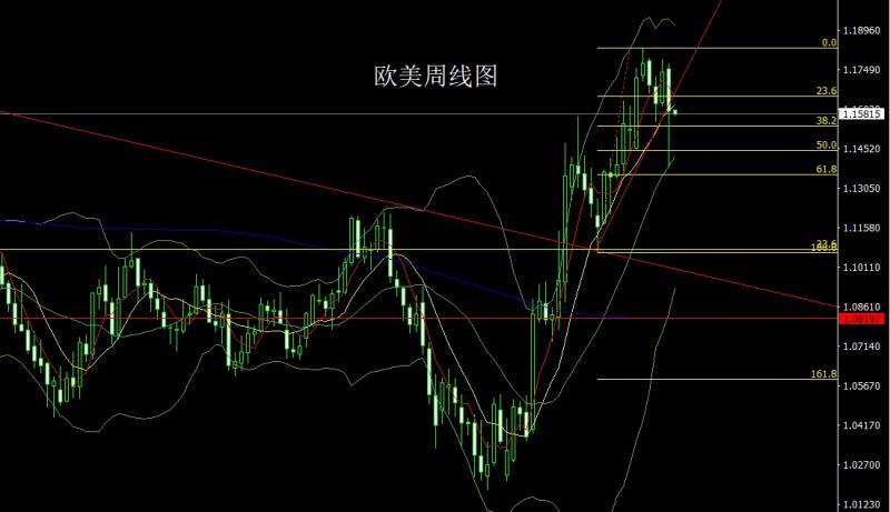 I mercati europei e americani hanno aperto a 1.17514 la scorsa settimana e il mercato è leggermente aumentato, dando una posizione di 1.17719. Il mercato è caduto fortemente. La linea settimanale era nel punto più basso di 1.13880. Il mercato è aumentato fortemente alla fine della sessione di trading. Dopo che la linea settimanale ha finalmente chiuso a 1.15945, la linea settimanale ha chiuso con una grande linea negativa con una linea d'ombra inferiore molto lunga. Dopo aver terminato questo modello, la perdita di arresto di oltre 1.15100 questa settimana è stata 1.14900. L'obiettivo era 1.015600 e 1.15900 e 1.16200 e 1.16500.