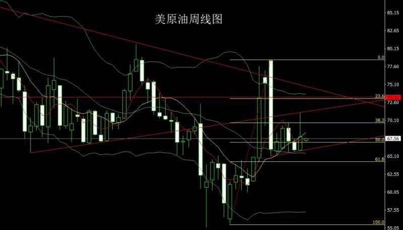 Il mercato del petrolio di rozzo statunitensi aperto a 65.88 scorsa settimana e il mercato leggermente. Dopo aver regalato una posizione di 65,83, il mercato è aumentato fortemente. La linea settimanale ha raggiunto il punto più alto della precedente pressione della linea di tendenza di 71,2 e il mercato è diminuito fortemente. La linea settimanale ha finalmente chiuso a 67,8. Dopo che il mercato si è chiuso in una linea dell'ombra superiore molto lunga, il mercato ha chiuso in una forma di testa di martello invertita. After this pattern ended, 68.6 short stop loss was 69.1 today, and the target below was 67 and 66.5 and 66.
