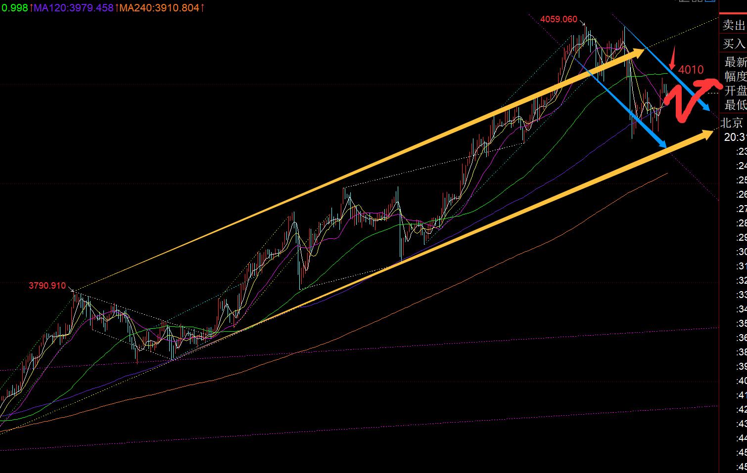 In secondo luogo, il livello d'oro a 4 ore: l'attuale risonanza a 10 giorni e il mid-rail è sotto pressione di 4000 Al passaggio, la media mobile a 5 giorni è supportata a 3981. Presta attenzione alla concorrenza tra di loro stasera; se riuscirà a riconquistare il suo punto d'appoggio sopra i 4000, si prevede che salirà ulteriormente; al contrario, se scende sotto 3981 e cade verso il basso, ci vorrà del tempo per oscillare e stabilizzarsi;