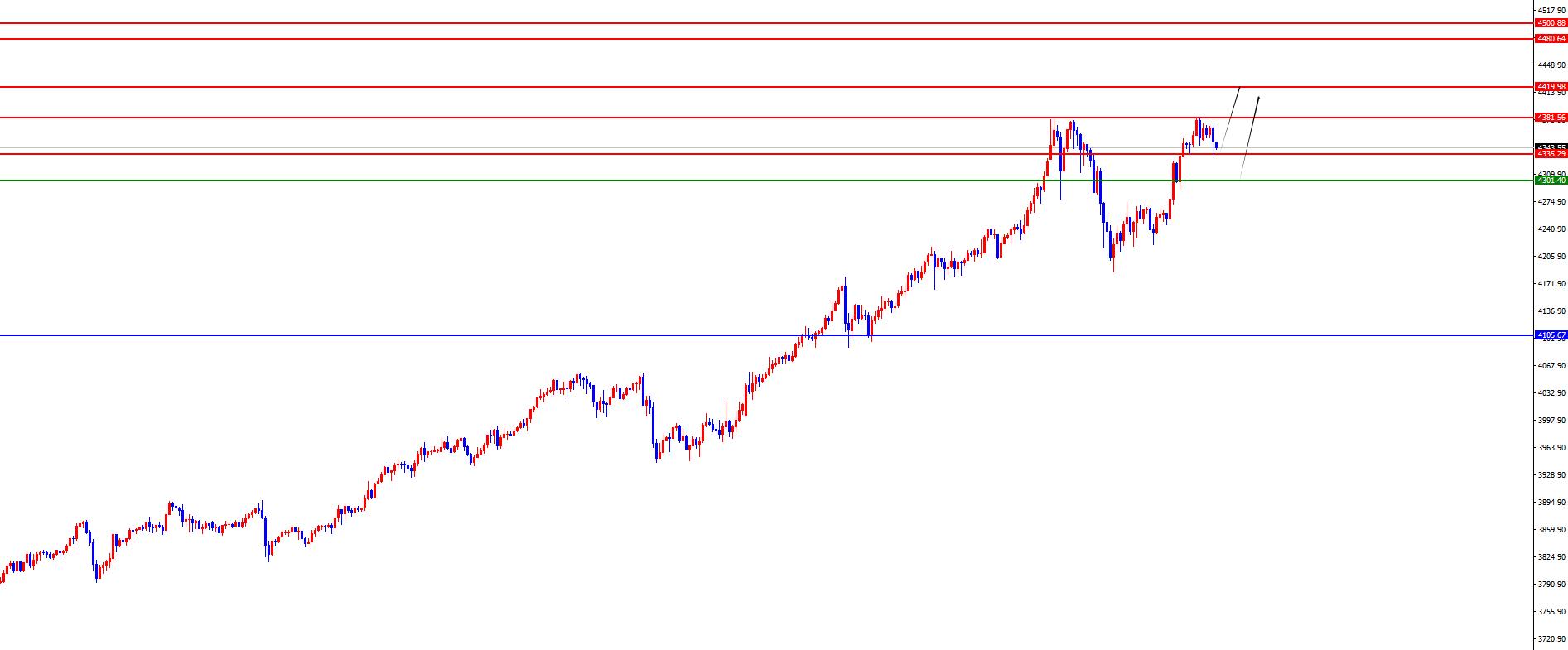 L'area oro 4300 è maggiore, la difesa è 4280 e l'obiettivo è 4370-4420-4480 (i radicali saranno più incerti prima nell'area 4335, e il mercato europeo romperà in alto prima che sia stabile)