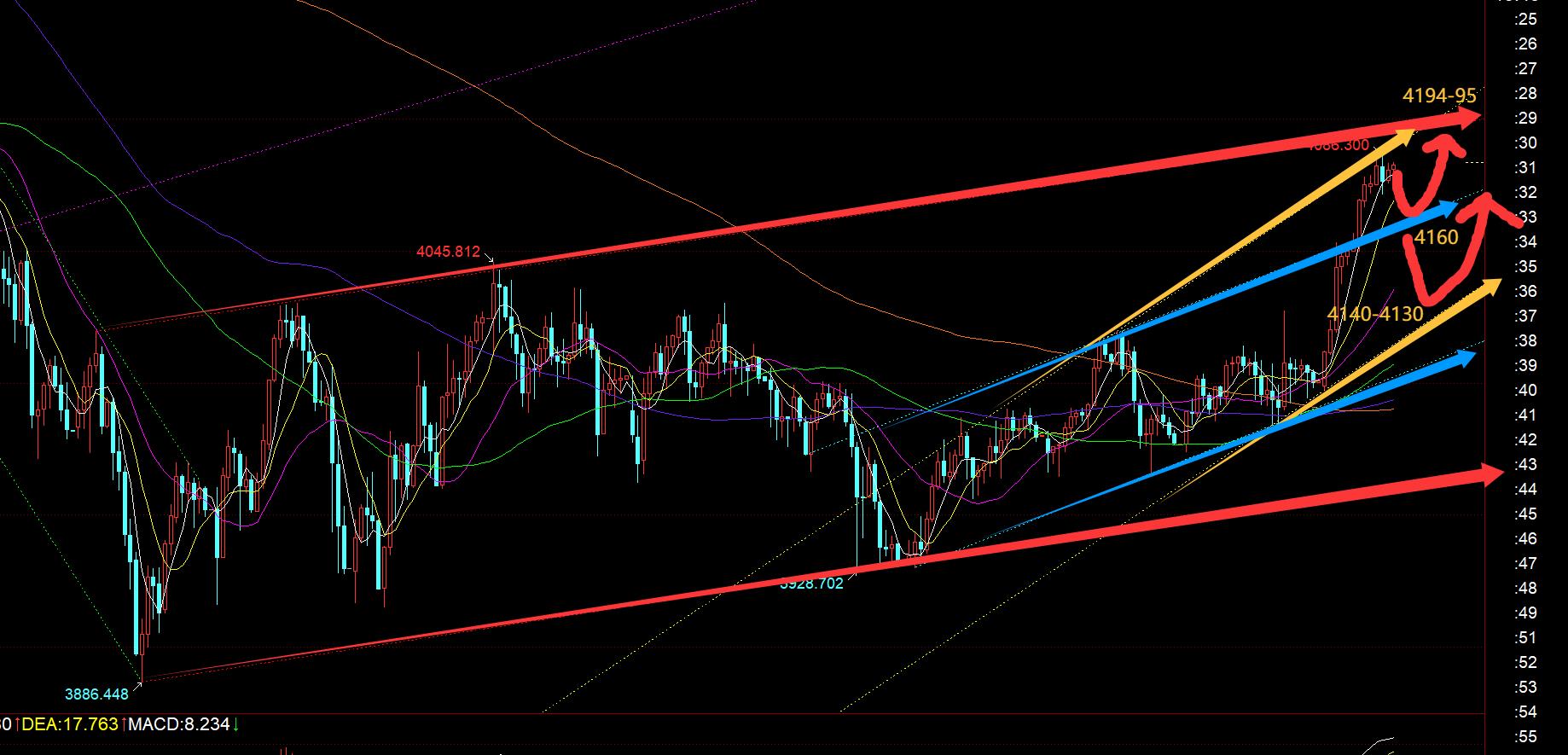 Quarto, il livello orario d'oro: Zhou Video ha pianificato di continuare a testare il trend rialzista a 3990 questa mattina. Di conseguenza, è salito intorno a 4000 in apertura senza guardarsi indietro. Dopo aver sfondato la resistenza superiore della rotaia di 4053 sul canale ascendente blu nella foto sopra, ha continuato a sfondare. La corrente l'altezza dell'impatto elevato è 4086; e il continuo rialzo dei mercati asiatico ed europeo significa che il mercato statunitense salirà di nuovo per la seconda volta, ma se non fa un passo indietro, non ha il coraggio di seguirlo direttamente. Dopotutto, l'aumento intraday è stato vicino a 90 metri, www.xmaccount.come giovedì scorso, se è forte durante il giorno, non si ritirerà, ma si indebolirà quando si ritirerà di notte, tuttavia, non dovrebbe esserci troppo lavaggio dopotutto, ha sfondato il livello di resistenza frontale chiave di 4040; il primo supporto stasera è prestare attenzione alla traccia superiore del canale blu per ripercorrere il punto di conferma di 4060, seguita dalla linea 4040, che sarà anch'essa vicina alla posizione di metà traccia, e il limite ultimo è la traccia inferiore del nuovo canale giallo 4030-20, finché osate scendere, dovete osare continuare ad essere rialzisti; resistenza a breve termine, prestare innanzitutto attenzione alla recente linea 4094-95 del binario superiore del canale rosso. Se supera la stazione, guarderà gradualmente all'intervallo 4133-4155;