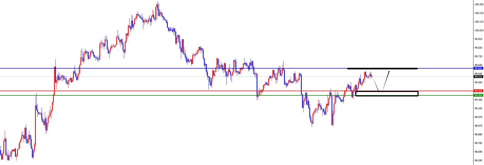 Lo spartiacque chiave è l'intervallo 99,30-35 e il prezzo rimane lungo finché non vi è alcun segnale di inversione