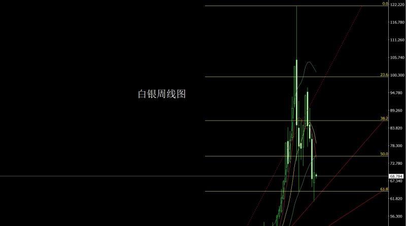 Il mercato dell'argento ha aperto in ribasso la scorsa settimana a 66,692, per poi crollare per primo. Il minimo settimanale ha raggiunto 60,78, dopodiché il mercato è salito fortemente. Il massimo settimanale ha toccato quota 74.624, dopodiché il mercato è tornato sotto pressione. Il massimo settimanale Dopo aver finalmente chiuso a 69.796, la linea settimanale ha chiuso con una linea Zhongyang con lunghe linee d'ombra superiori e inferiori. Dopo aver terminato in questa forma, il prezzo di mercato odierno è superiore a 67 e lo stop loss è 66,75. L'obiettivo è 67,5, 68, 69 e 70.