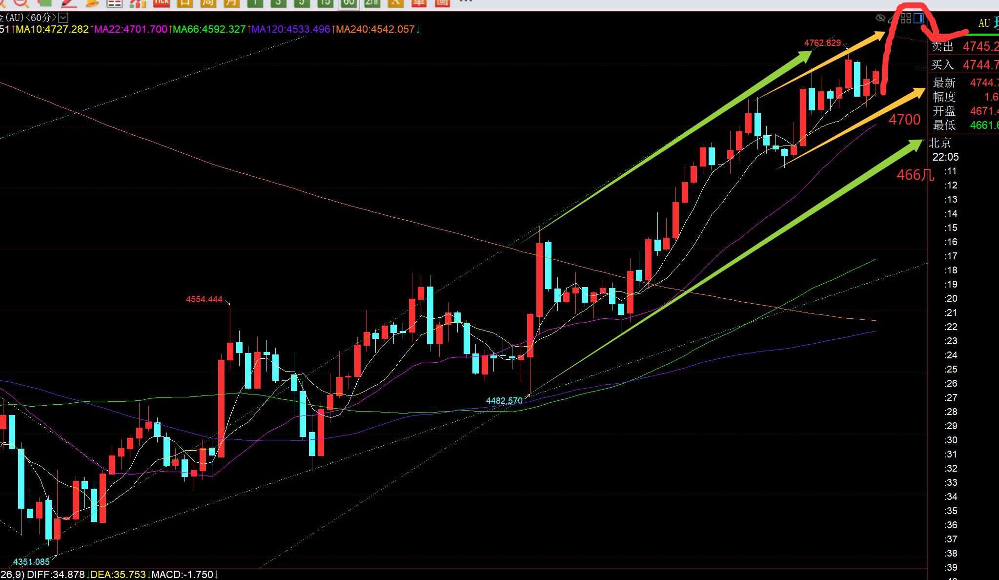 In primo luogo, il livello giornaliero dorato: ieri ha chiuso www.xmaccount.come previsto con un sole pieno e il prezzo di chiusura era proprio al Posizione divisa al 50% tra 5238-4100, 4668. Il mercato asiatico di oggi è in linea. Continua a salire, toccando oltre 4750 e non è lontano dalla linea di resistenza del 61,8% di 4803; secondo le previsioni delle ultime settimane, questo ciclo di rimbalzo può almeno vedere 618, ovvero 4800, e allo stesso tempo, la traccia centrale scende a 4828. La media mobile a 66 giorni è 4854, il che significa che potrebbe esserci una certa resistenza nell'intervallo 4800-4854. Se non riesce a passare, ci sarà un’impennata e una caduta. Quando si cade indietro, di solito guardiamo prima la posizione di divisione 382 e la linea 4530. Dopo essersi stabilizzato, continuerà a fluttuare e ad aumentare fino all'impatto 5000-5100; ma se rompe con forza l'intervallo di resistenza di 4800-4854, avrà un ulteriore impatto diretto su 5000-5100 e la bandiera si alzerà.Avvicinarsi al tracciato superiore del canale sagomato; per gli amici che hanno accumulato fondi, poiché il punto più alto di 1200 è a 20 yuan dalla mia aspettativa di ridurre le mie partecipazioni, non ho ridotto le mie partecipazioni per scappare dall'alto. Dopo aver sperimentato la violenta svendita di panico qualche tempo fa, è inevitabile che la mia difesa psicologica sia stata distrutta e non posso sopportare un'altra svendita. Pertanto, coloro che ne hanno la capacità possono prendere in considerazione la riduzione delle proprie posizioni a 4800 e oltre, quindi fare un passo indietro e continuare ad acquistare per ridurre il costo del prezzo medio. Si consiglia di ridurre la quota di partecipazione per mantenere il capitale o realizzare un piccolo profitto. Sì, se dopo la riduzione il mercato non si reprime, ma sale direttamente, puoi solo trattenere la parte rimanente fino alla fine dell'anno. Don't be tempted to fill the position higher than the point where you reduced the holding, so it makes no sense for you to reduce the holding; ovviamente, se ti sdrai e non vuoi sballottare avanti e indietro, puoi anche arrivare fino in fondo e superare i 1.300 yuan/grammo. È solo questione di tempo;