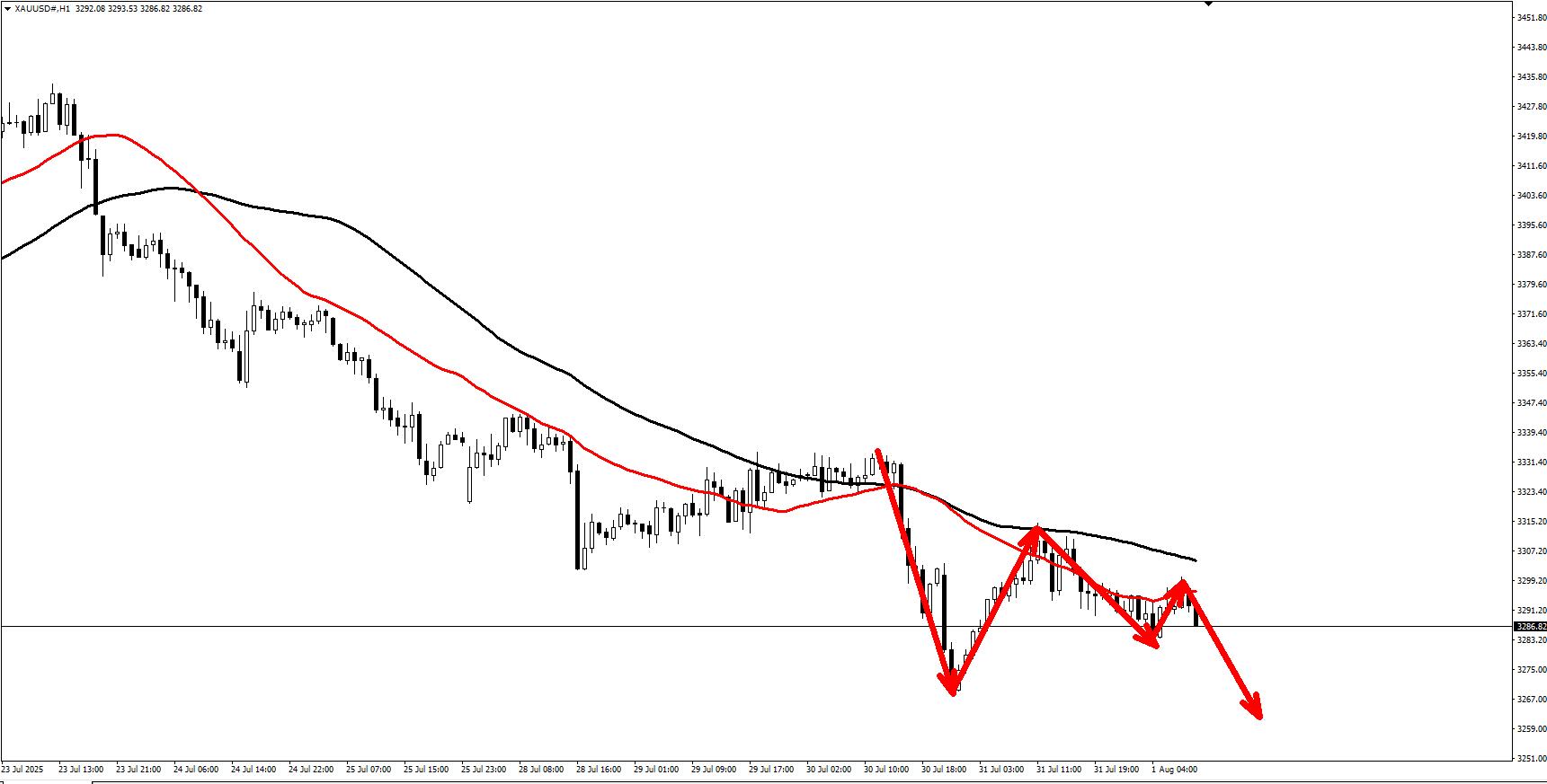 금 3315 짧은, 중지 손실 3325, Target 3280