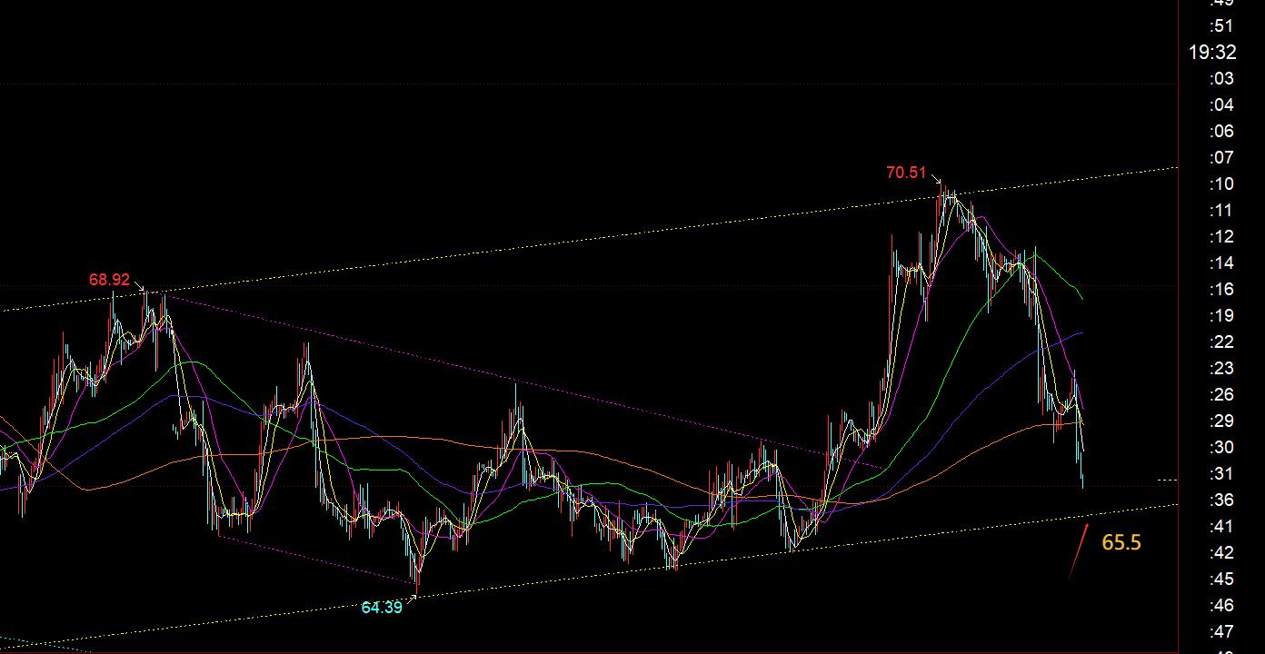 두 번째,은 : 아침에, 아침에, 바닥이 나가고 안정화 된 K, 36.65는 37-37.2 목표 저항 감소에 도달했다. 시간당 줄 66 일 이동 평균의 지원, 일단 파산 된 일단 68.4는 67 점으로, 예측과 일치하며, 가장 낮은 지점에서 67에 도달합니다.