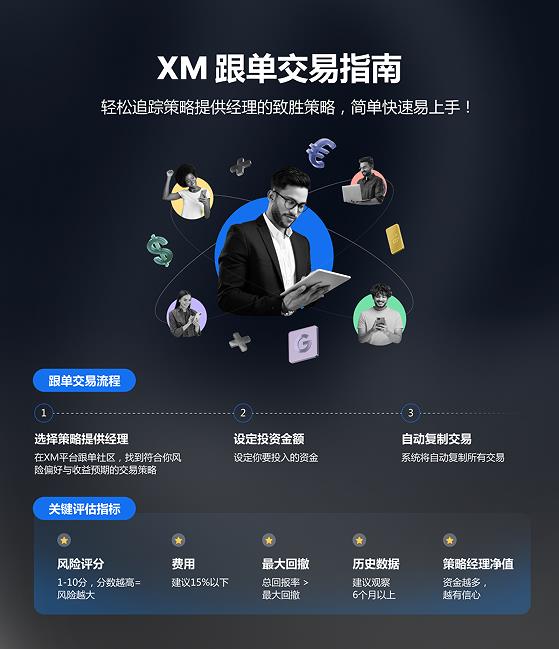 Dalam Komuniti Perdagangan Salinan XM (CopyTrading), anda boleh memilih strategi yang sesuai untuk menyediakan pengurus berdasarkan keutamaan risiko dan gaya perdagangan anda sendiri, dan sistem secara automatik akan menyegerakkan operasi perdagangan mereka secara automatik - dengan mudah mengikuti pesanan dan menguasai irama pasaran!