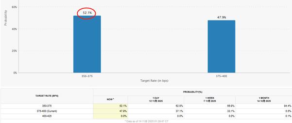 Berbanding dengan kebarangkalian lebih daripada 70% pemotongan kadar faedah minggu lepas, kebarangkalian pemotongan kadar faedah terkini telah menurun dengan ketara. Pada asalnya, kenaikan emas dan perak didorong oleh peningkatan kebarangkalian pemotongan kadar faedah. Sekarang kebarangkalian pemotongan kadar faedah telah menurun, kenaikan emas dan perak mungkin menghadapi rintangan yang kuat.