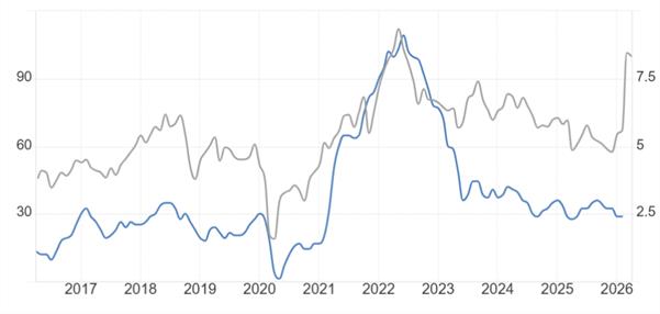 XM: Pada bulan Mac, perang antara Amerika Syarikat dan Iran semakin sengit. Harga minyak antarabangsa telah melonjak melebihi AS$110 pada awal Mac. Walaupun harga minyak antarabangsa jatuh semula pada separuh kedua bulan Mac, sebut harga keseluruhan adalah sekitar AS$90. Data CPI A.S. sangat sensitif terhadap perubahan harga minyak antarabangsa, dan harga minyak yang tinggi pasti akan membawa kepada inflasi yang tinggi.
