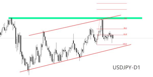 技术角度看,USDJPY处于中期下跌趋势下的筑底阶段,筑底结构已经持续近四个月时间,仍然没有出现决定性的上涨波段。7月份行情曾冲高至150.9点,该点位是今年3月份的阶段性高点。该点位出存在较强抛压,行情刚刚触及150.9点,隔天便出现剧烈下跌,下跌波段最低点超过0.618分位,意味着短期空房力量更强。目前,市价运行于图中通道线下轨上方,考虑到150.9阻力位较强,行情继续下行直至处于下跪的概率较高。