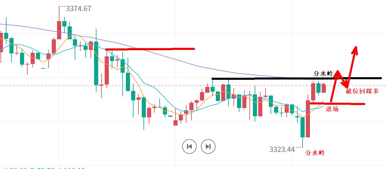 前一日大跌,第二日看延续,口诀给大家说的很清楚,欧盘回撤是关键,而且进场位也刚好3347-8一线。