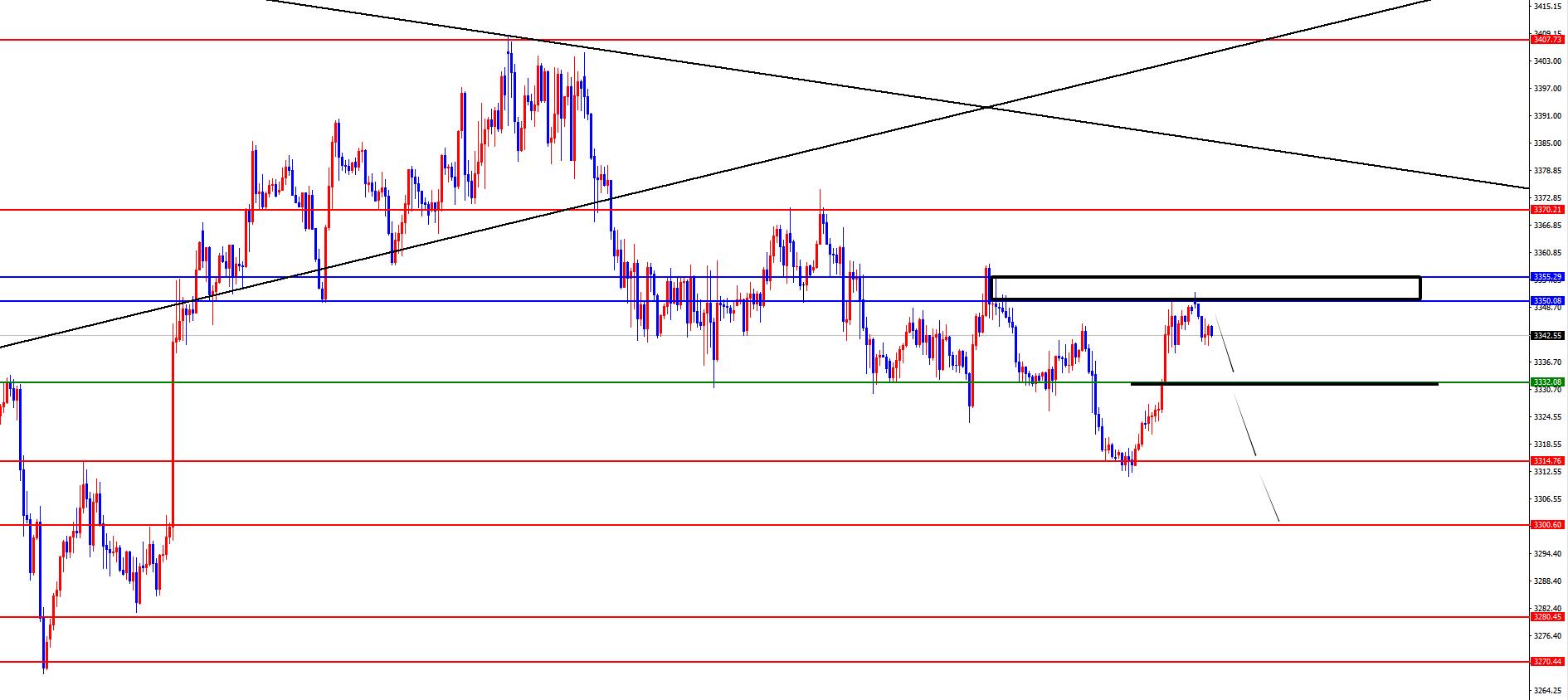 黄金3350-55区域空,防守10美金,目标3310-3300-3280