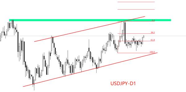 技术走势看,日线级别,USDJPY处于4月22日以来的触底反弹阶段,但反弹的力度较弱,具有明显的震荡特征。近期的K线运行于图中上升通道内部,在上下通道线被有效突破之前,震荡反弹的局面不会改变。短周期看,日元汇率处于窄幅震荡状态,震荡最低点远超前一轮上涨波段的0.618分位,意味着多头力量不足,未来行情遇阻后大幅下行概率较高。结合基本面日本央行加息预期与美联储降息预期的叠加效应,USDJPY任何一次的触顶,都有肯能导致日元大幅升值并向下冲击通道下轨。