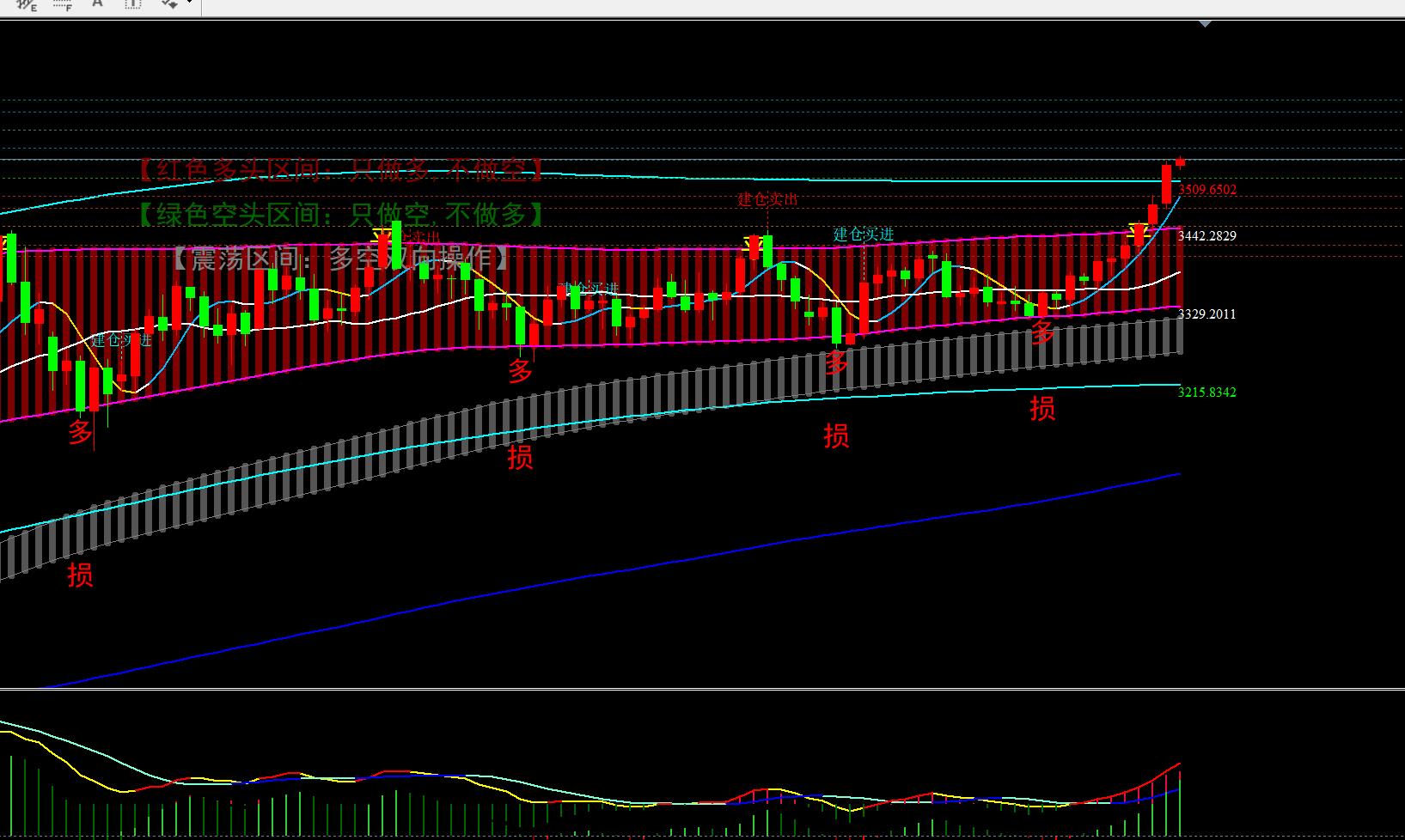 多头:回落3502-08区域做多, 上方3558-66做空,各防守10美元,压力参考3547-58-66-80,支撑3520-15-08-00.其它位子右侧信号线下临盘提示。