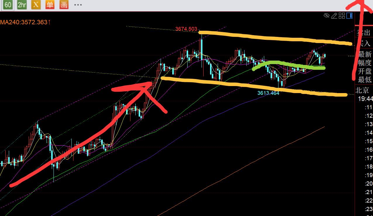 第一,黄金方面:昨日算是一言难尽;前日不管是早间3616看涨,还是欧美盘3630看涨都不给入场机会,全部踏空上涨利润;昨日早间触及上行通道下轨附近,靠近66日均线支撑,则3640上提前尝试看涨,的确企稳拉升了,但只给到3649,离目标差几米,离减仓差1米,最终回落破损出局;欧盘首次跌至日线5均线3623一线出现企稳反弹,5分钟二次下探3623再次反弹至3630,则尝试小双底去试探看涨,结果美盘前来了一波刺破3620前日低点的诱空,美盘后cpi数据利空金价,价格1秒刺破日内低点,再1秒反拉20米回去;这也是本周几乎公布的几个重大消息,日内走势都提前走了消息预期,等真公布之后,结果和实际走势就反向运行;幸亏,后半夜胆大些,3638直接尝试了一次小波段看涨,当时分析得出,日内下跌就属于洗盘,日线5均线回踩确认有所探底拉升,今日就存在一波延续上涨,果然今天的确拉升逼近周三高点3658,刚好20米左右的波段利润,可以挽回些短线的损失;