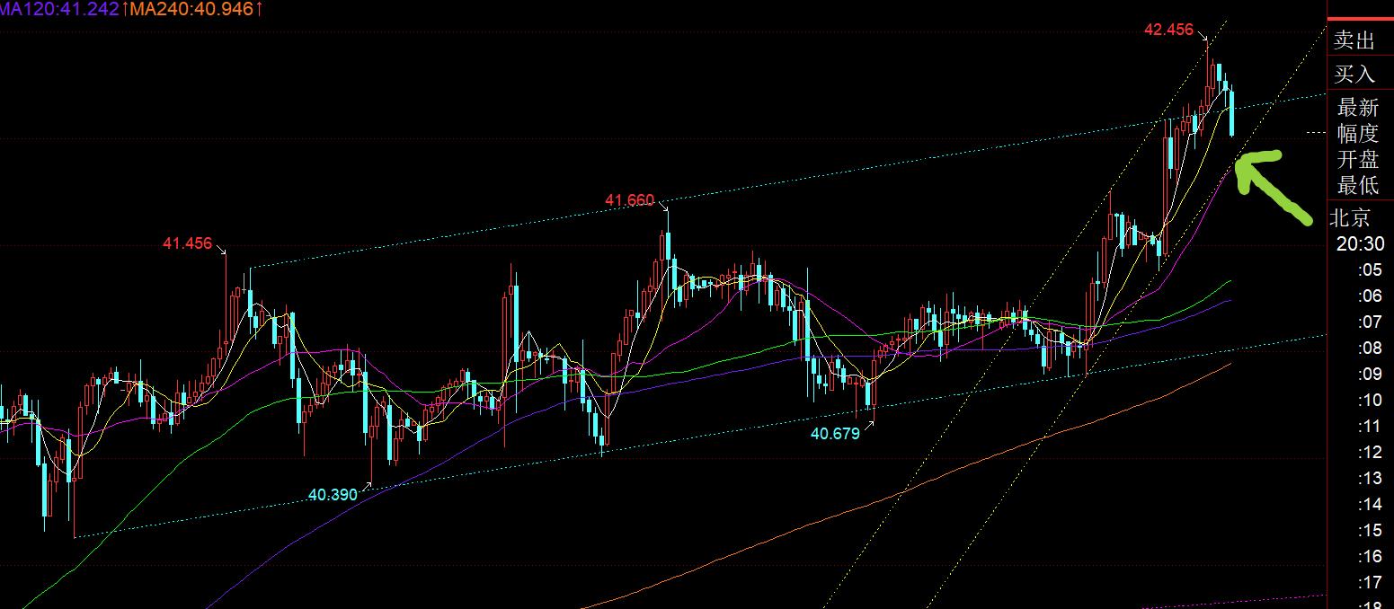 第二,白银方面:这周白银是最靓的仔,一路提示40.4、40.5、40.6、40.7-40.8上坚持看涨,低点逐步上移,今日爆发了,冲击42美元的上方;