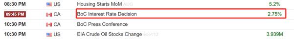 本周三21:45,加拿大央行将公布9月利率决议结果,主流预期认为其将降息25基点,基准利率或将从2.75下降至2.5%。今天4月份以来的三次利率决议,加拿大央行一直维持基准利率不变。4月份以来,面对美国突如其来的关税政策,加拿大央行不敢贸然行动,只能选择维持利率不变。最初,加拿大央行寄希望于贸易谈判,希望美国能够取消所有关税,然而,事实证明,这种方法行不通。加拿大的最大贸易国是美国,最大的出口商品是原油。现如今,美国对加拿大征税,国际油价又异常低迷,加拿大的经济前景偏向悲观。为防止宏观经济陷入衰退,加拿大央行不得不尽快重启降息。