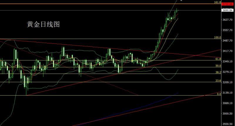 昨日黄金市场触及整数关口,早盘开盘在3680.2的位置后行情先回落给出3674.2的位置后行情强势拉升,美盘时段日线最高触及到了3703.5的历史新高后行情短期获利了结,日线最终收线在了3689.8的位置后行情以一根上影线较长的倒锤头形态收线,而这样的形态上收尾后,今日的行情依旧有冲高需求,点位上,下方3325和3322的多和上周3368-3370的多和3377和3385多和3563的多减仓后止损跟进在3570持有,今日先回落给出3670多止损3664,目标看3680和3695和3703.破位的话看3712和3721和3732压力争夺。