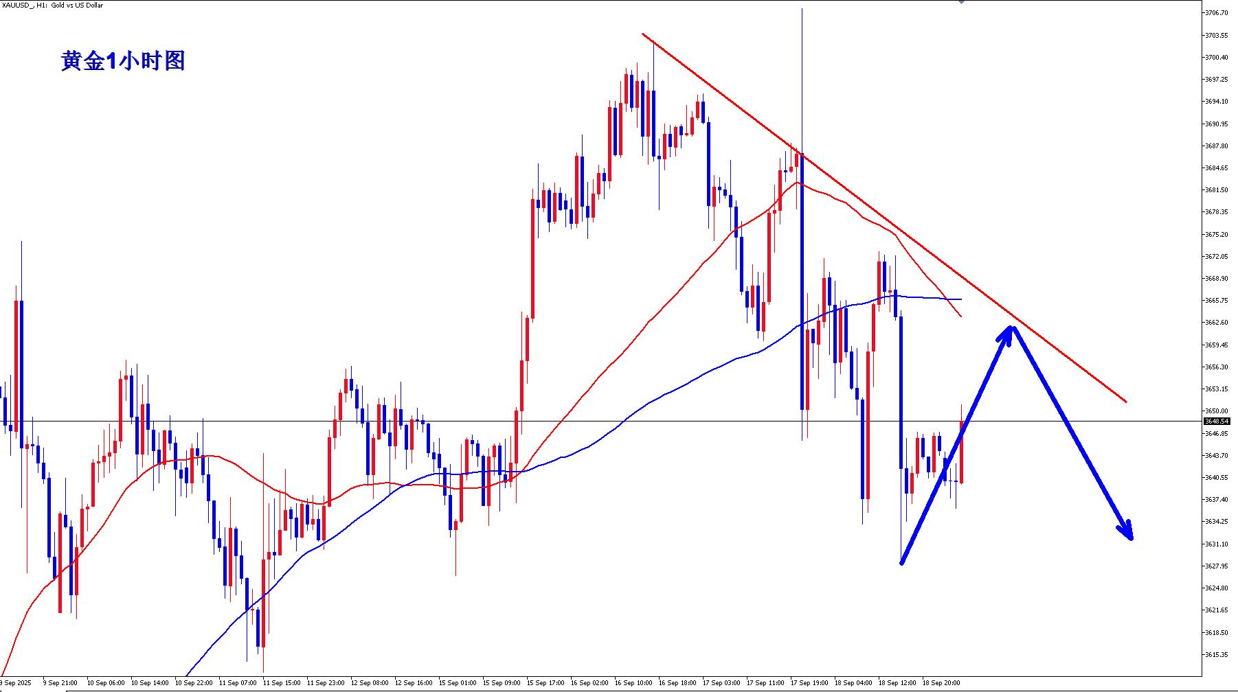 【XM外汇决策分析】:黄金震荡下跌,早盘反弹继续空!