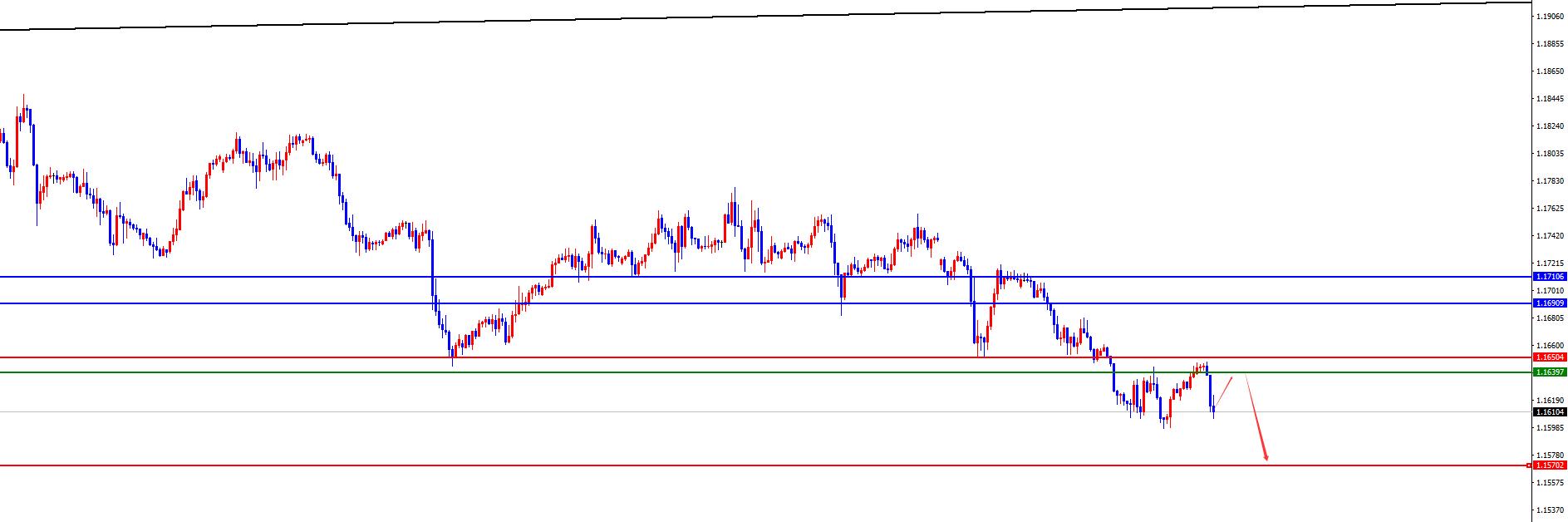 从多周期分析,从月线级别来看,欧美受撑于1.1100位置,所以价格在此位置之上长线多头对待。从周线级别看价格受撑于1.1690区域的支撑,此位置是中线走势的多空分水岭,本周重点关注周线收盘能否收在此位置之下是关键。从日线级别,日线上是我们强调波段走势的关键,目前日线阻力于1.1710位置,价格在此位置之下波段持续看承压。从四小时看,目前阻力于1.1640-50区间,此位置之下暂时看承,只有后续上破此位置才会回补缺口,否则暂时右侧方式看承压即可。一小时看随着价格承压下跌,短线先关注1.1570区域支撑,此位置为下方短线支撑区域。