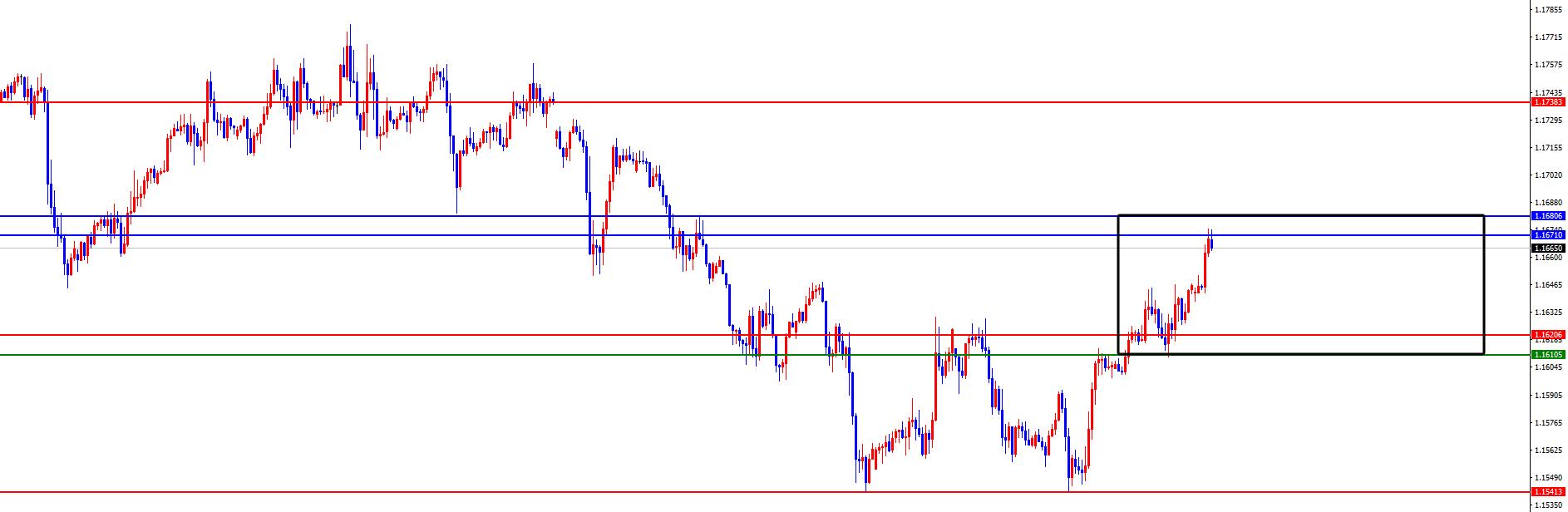 从多周期分析,从月线级别来看,欧美受撑于1.1100位置,所以价格在此位置之上长线多头对待。从周线级别看价格受撑于1.1680区域的支撑,此位置是中线走势的多空分水岭,上周已经进行下破,关注本周最终收盘表现。从日线级别,日线上是我们强调波段走势的关键,目前日线阻力于1.1670位置,价格本周如期再度回踩,今日作为过度日对待。从四小时看,在上周五进行突破四小时阻力,周二价格如期再度突破站稳向上反弹,并且顺利测试到日线及周线阻力区间。目前四小时支撑于1.1610-20区间支撑,此位置在没有下破前短线还在多头,价格一旦下破则再转头看承压,目前注意市场节奏,操作上右侧交易方式对待。