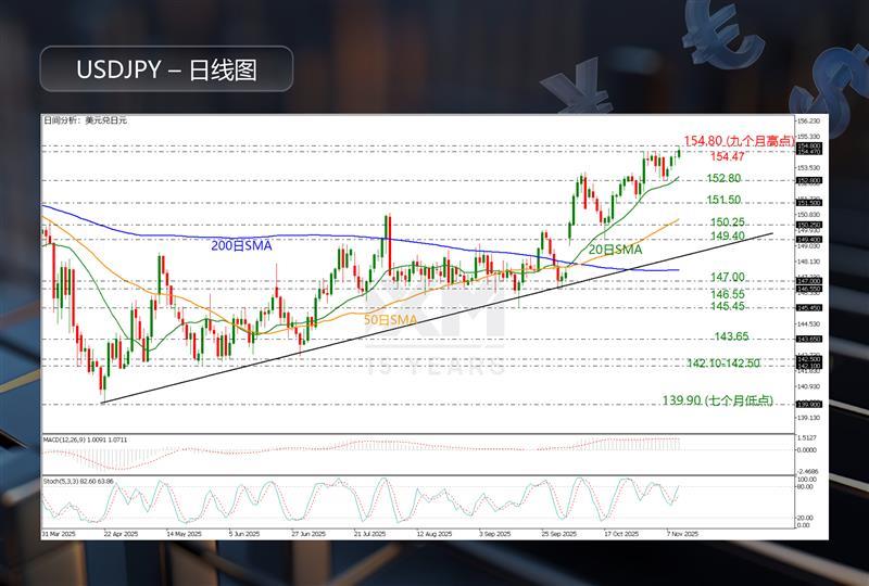 总而言之,USDJPY走高反映政策分歧和市场对美元持续走强的信心。虽然技术指标倾向多头,但超买状态仍需保持谨慎。