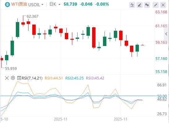 周二亚盘,原油交投58.73附近。市场对美联储可能于12月降息的预期提振了风险资产,同时投资者对俄罗斯能否顺利达成推动其石油出口的乌克兰和平协议持谨慎态度限制了油价的跌幅,市场正密切关注即将公布的美国经济数据,以及俄乌和谈的进一步进展,这些因素将继续主导短期油价走势。