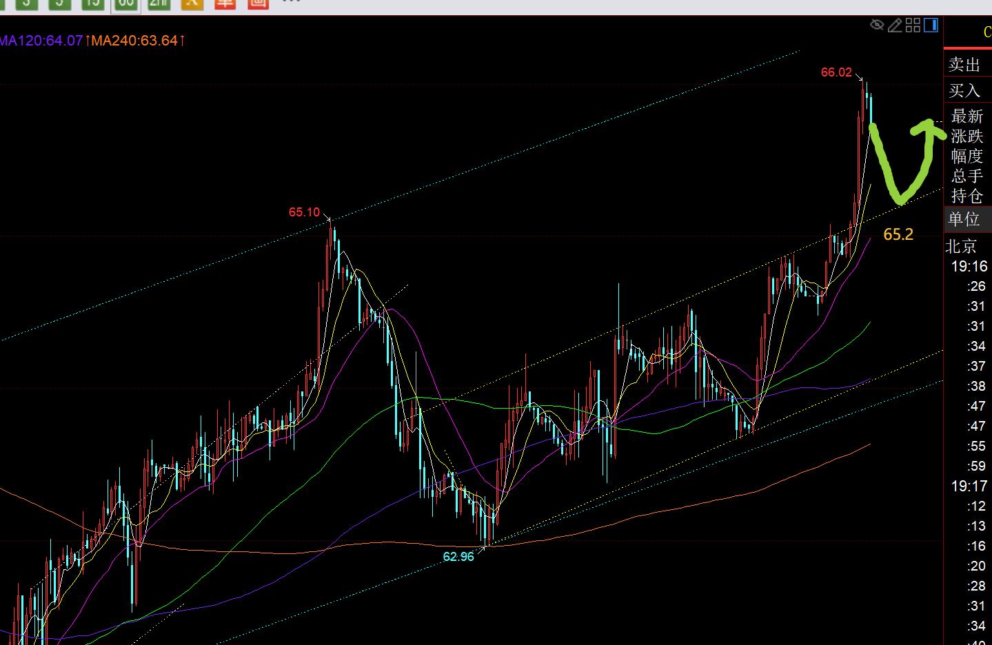 In terms of crude oil: the daily line closed positively yesterday and broke through the middle track first, which tends to continue to rebound para cima; A sessão européia de hoje continuou a quebrar os máximos, e a sessão dos EUA analisou o segundo pull-up, preste atenção à retração do canal amarelo, confirmando o suporte de 65,2, estabilizando e otimista;