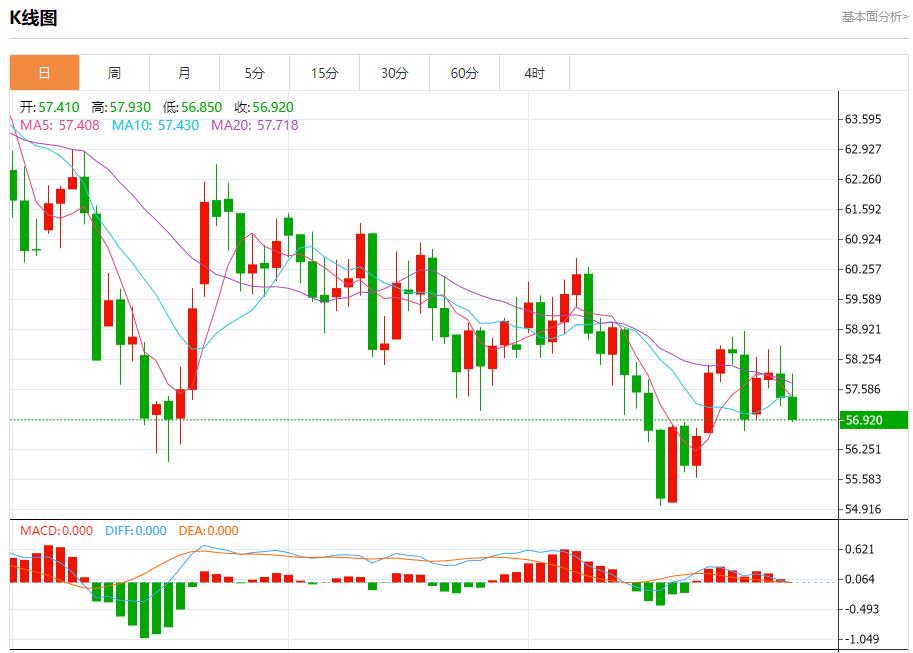 Ham petrol piyasası: Pekin saatiyle 21:20 itibarıyla ABD petrolü %0,91 düşüşle 56,910 seviyesinde işlem görüyor. New York piyasasının açılışı öncesinde düşük dalgalanmalar güçlüydü; Brent 60,80 ABD Doları/varil (%0,12 artışla) ve WTI 57,60 ABD Doları/varil (%0,15 hafif artışla) seviyesindeydi. 61.50-62.00 direnç bölgesine ve 59.80-60.00 destek bölgesine odaklanın. Yüksekten satıp düşükten almanız tavsiye edilir.