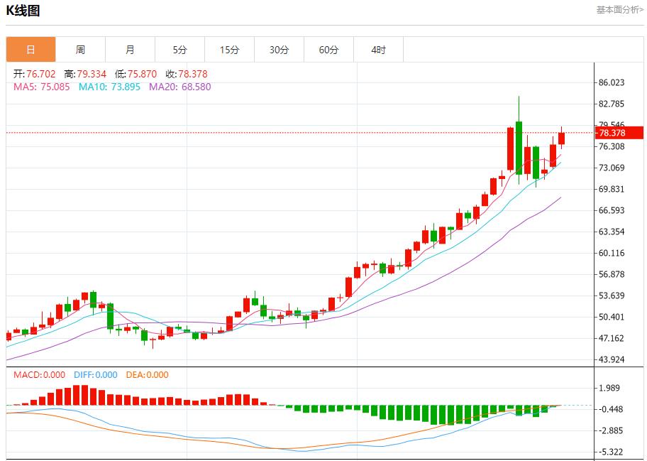 Spot gümüş: Pekin saatiyle 21:20 itibarıyla spot gümüş %2,47 artışla 78,453 seviyesinde işlem görüyor. Gümüş fiyatları New York ön piyasasındaki son işlem seansında hafif düştü, ana direnç 78,10$'da sabitlendi ve direnci kırmak için gereken pozitif ivmeyi kazanmaya çalıştı. Ana kısa vadeli yükseliş eğiliminin hakim olduğu EMA50'nin üzerinde işlem görüyordu ve aşırı alım seviyelerinde istikrar kazanmasına rağmen göreceli güç göstergesinden olumlu sinyallerin ortaya çıkmasıyla birlikte ticareti bu yörüngeyi destekleyen eğilim çizgisi üzerinde seyrediyordu.
