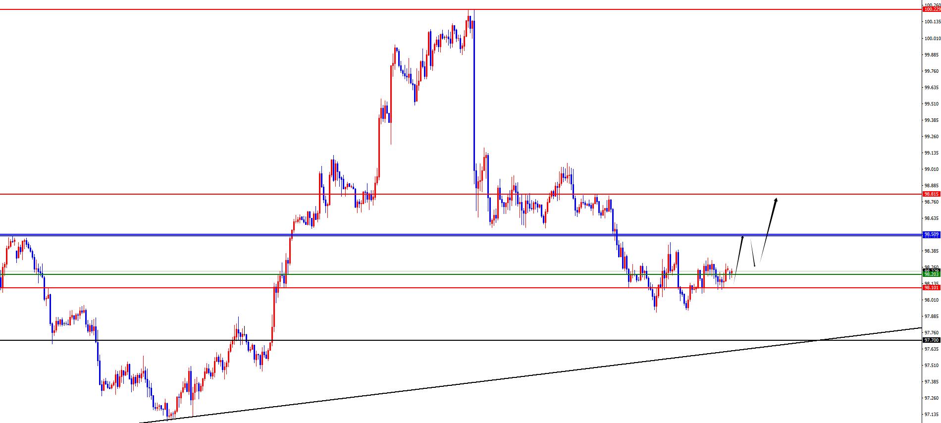 美指98.10-20區間多,防守5美金,目標98.50-98.80