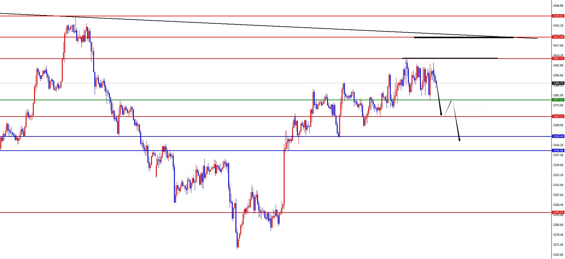 黃金3400區域空,防守10美金,目標3380-3365-3350