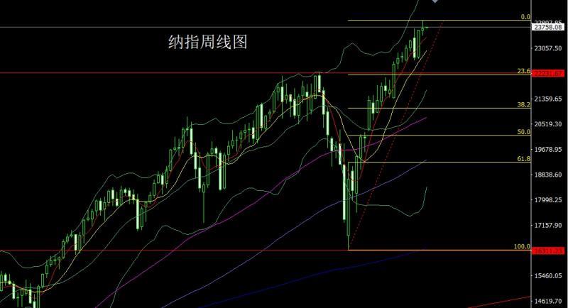 納指市場上週開盤在23653.75的位置後行情先回落,週線最低給到了23478.73的位置後行情強勢拉升,週線最高觸及到了23967.88的位置後整理,週線最終收線在了23706.11的位置後,週線以一根上影線長於下影線的紡錘形態收線,而這樣的形態收尾後,本周依舊有回落壓力,點位上,上週五23860的空減倉後止損跟進在23900,今日23850空止損23900下方目標看23650,跌破看23600和23550-23500.