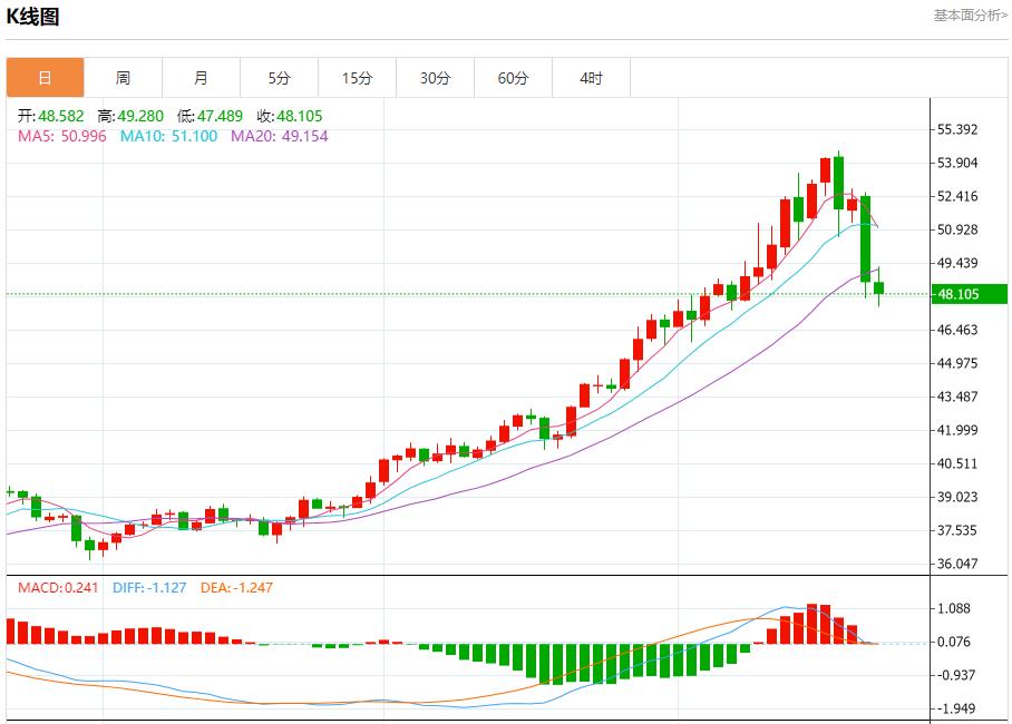 現貨白銀:截止北京時間20:23,現貨白銀下跌,現報48.101,跌幅1.05%。紐市盤前,(銀)的價格在最後一日盤中交易中下跌,抹去了今日早盤的大部分漲幅,準備跌破關鍵支撐位47.80美元。在短期內,受強烈看跌修正波的主導影響,由於其交易價格低於EMA50,負面壓力持續存在。我們注意到其相對強弱指標上的超賣狀況正在被消化,這使其在短期內可能繼續錄得更多的虧損。