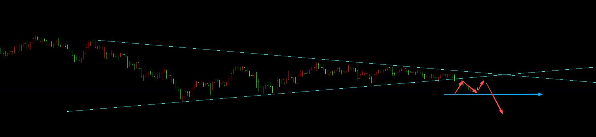 昨天日內反复震盪後,到晚間跌破三角大幅下跌,價格到28.8反彈到76,日圖收出光陰,從盤面來看,本身預期的昨天回30會出一波底部走二次的上行,反彈力度也出現了,不過收盤再次回到底位變成光頭,這基本也看出顯示不是底還將進一步下跌,昨晚反彈到反壓力下跌,今天從圖表來看,上方壓力還是反壓力這裡,由76下移到了68附近,支撐26,跌破進一步下行,所以對於今天操作上難點是是否反彈,不反彈怎麼辦,所以今天要做好破位追空的準備,所以綜合得出結論如下: