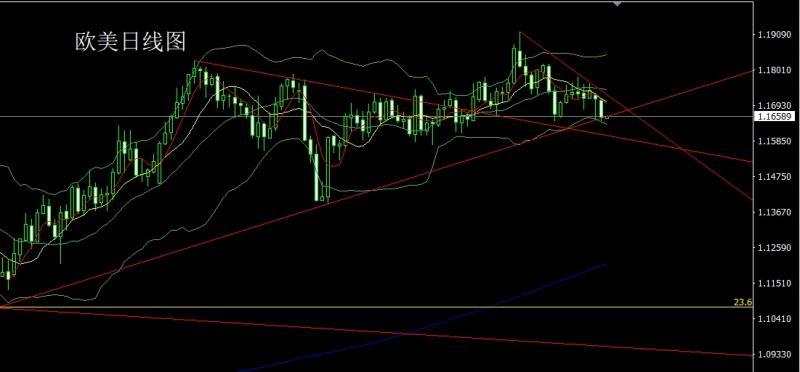 Yesterday, the European and American markets opened at 1.17091 in early trading, and then the market rose slightly to reach 1.17150, and then fell back strongly. The daily line reached the lowest position of 1.16461, and then the market consolidated. The daily line finally closed at 1.16561. The daily line closes with a big negative line with a lower shadow line that is slightly longer than the upper shadow line. After the end of this form, the short stop loss below 1.17100 today is 1.16600 and 1.16400, and below it is 1.16200 and 1.16000.