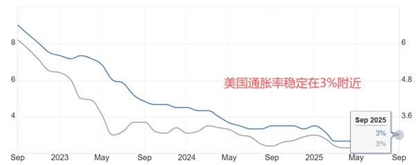 The reason for the disagreement within the Federal Reserve on cutting interest rates is that the U.S. labor market data and inflation data are inconsistent. Traditional economic theory holds that a weak labor market will lead to reduced demand for goods and inflation will tend to fall. At this stage, the U.S. job market is already showing signs of fatigue: the number of new non-agricultural jobs continues to fall below the 100,000 mark. However, inflation remains well above the Fed's 2% target. In September, both the core CPI annual rate and the nominal CPI annual rate were 3%, which was high.1 percentage point above the target level. More importantly, the inflation rate in the United States has entered a plateau period, making it difficult to continue to decline. If the Fed cuts interest rates too much, it could cause inflation data to rebound quickly.