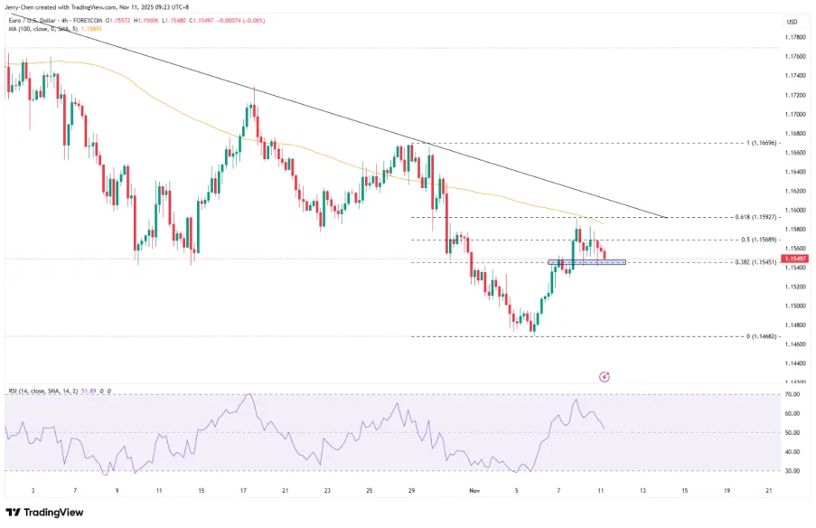 Aunque el fin del cierre no significa que los datos económicos recientes se publicarán a tiempo, se espera que la Fed tenga tres informes no agrícolas (septiembre, octubre y noviembre) xmaccount.como referencia antes de la reunión del 10 de diciembre. Esto reduce en gran medida el riesgo de errores en la toma de decisiones y, en consecuencia, también reducirá las diferencias graves dentro de la Reserva Federal. La probabilidad de un recorte de tipos en diciembre implícita en el actual mercado de tipos de interés se ha reducido a alrededor del 60%, lo que ha ayudado al índice del dólar estadounidense a estabilizarse en torno a 99,60.