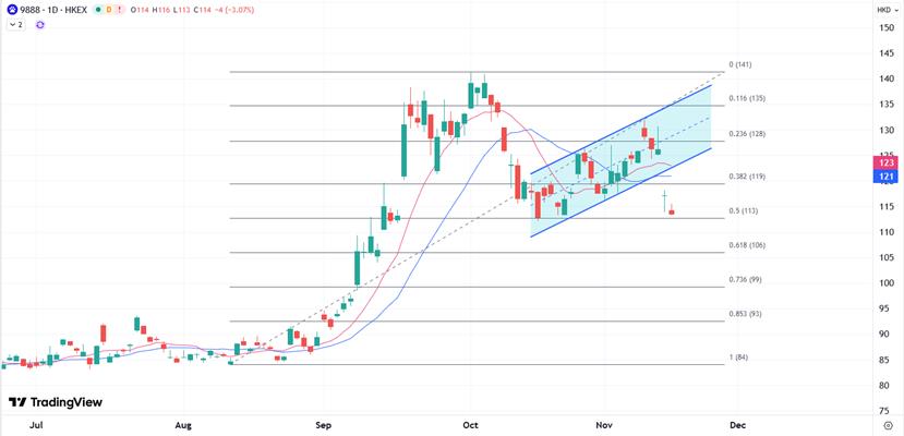 Le cours de l'action Baidu avant les résultats a encore tendance à être relativement bas. Suite aux récentes pressions sur les valeurs technologiques, si la performance apporte des bénéfices, on veillera à savoir si elle revient au-dessus de la moyenne mobile et pointe vers le niveau cible de 124 à 132 dollars de Hong Kong. Cependant, si la performance accélère sa pression à la baisse, on se demandera si elle testera davantage le support de 108 à 100 dollars de Hong Kong.